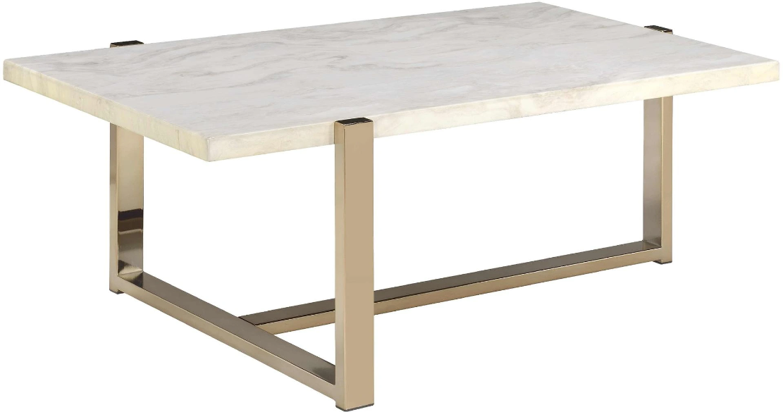 Expertly painted champagne gold "T" shaped base, and faux marble table tops the Feit coffee table offer a delicate and gorgeous structure. This highly recommended table will be a prominent furniture piece in any living room with its bright color scheme.Read More