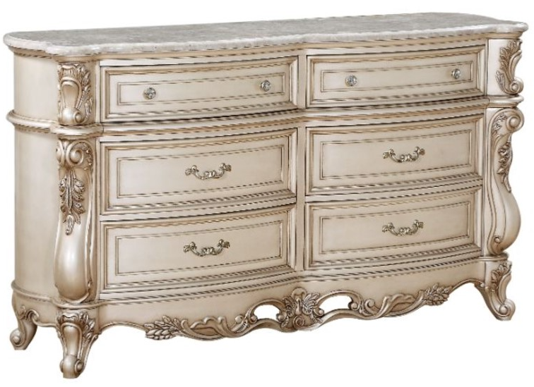 The Gorsedd dresser is exclusively designed and filled with romantic spirit. Expertly detailed, the dresser is crafted with romantic elements combining Queen Anne legs and ornate floral accents in matching golden ivory finish. Add glamorous French provincial charm with this uniquely designed collection that will make a statement in any bedroomRead More