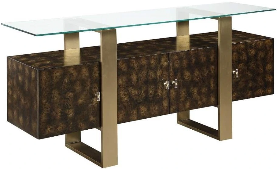 Elevate your home with this Mabyn console table. The brass and the antique finish give this piece a contemporary worldly appeal. It provides plenty of display space and storage. The sleek tempered glass tabletop will give your decor the illusion of floating.Read More