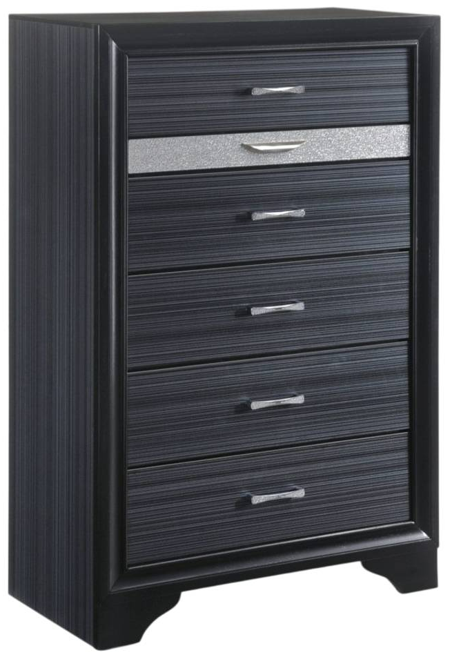 The Naima chest offers a sophisticated look, clean lines and contemporary style. This black chest features six drawers, with the second drawer being a felt-lined jewelry drawer with compartments and front panel with crystal-like inserts. Add this chest to your bedroom to provide an elegant style that will bring you a perfect sleek design.Read More