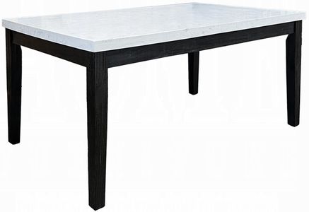 The Nolan marble dining collection offers an elegant design to turn your dining area into the most eye catching spot of your house. Each piece is supported by a strong wooden base in salvage dark oak, contrasting the flawless white marble table top and beige color upholstered chairs with Nailhead trim detail.Read More