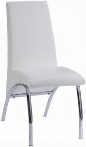 The Pervis collection has armless side chairs that feature padded seats and back in white faux leather. Also supported with metal curved legs. This collection will bring an elegant look to any dining room area and is perfect for you.Read More