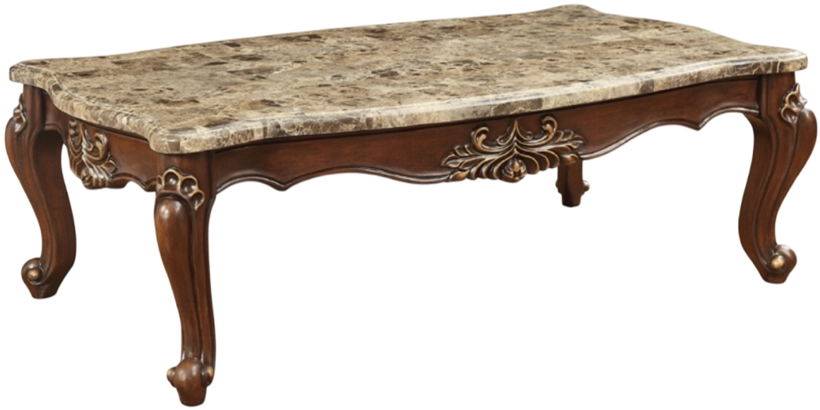 Constructed using durable marble tabletop and classic cabriole legs make up the beautiful Shalisa coffee table. The table features leaf trim moldings that are hand-brushed with gold to make them stand out for you to appreciate their beauty. The multi-tone brown marble creates a beautiful piece.Read More