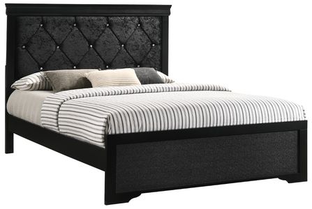 Elevate your bedroom with the Crown Mark Amalia black upholstered panel bed. Its black upholstery and plush textures create a serene, elegant atmosphere, while the diamond-tufted headboard adds a subtle touch of luxury, making it the perfect centerpiece for a sophisticated and inviting sanctuaryRead More
