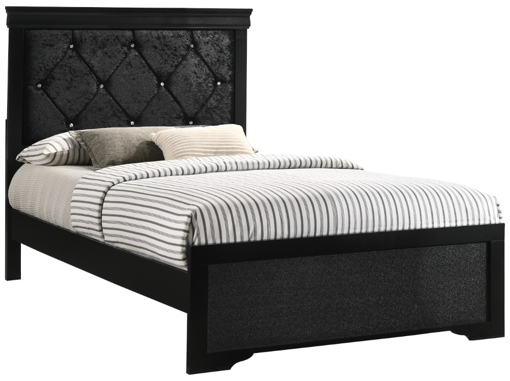 Elevate your bedroom with the Crown Mark Amalia black upholstered panel bed. Its black upholstery and plush textures create a serene, elegant atmosphere, while the diamond-tufted headboard adds a subtle touch of luxury, making it the perfect centerpiece for a sophisticated and inviting sanctuaryRead More
