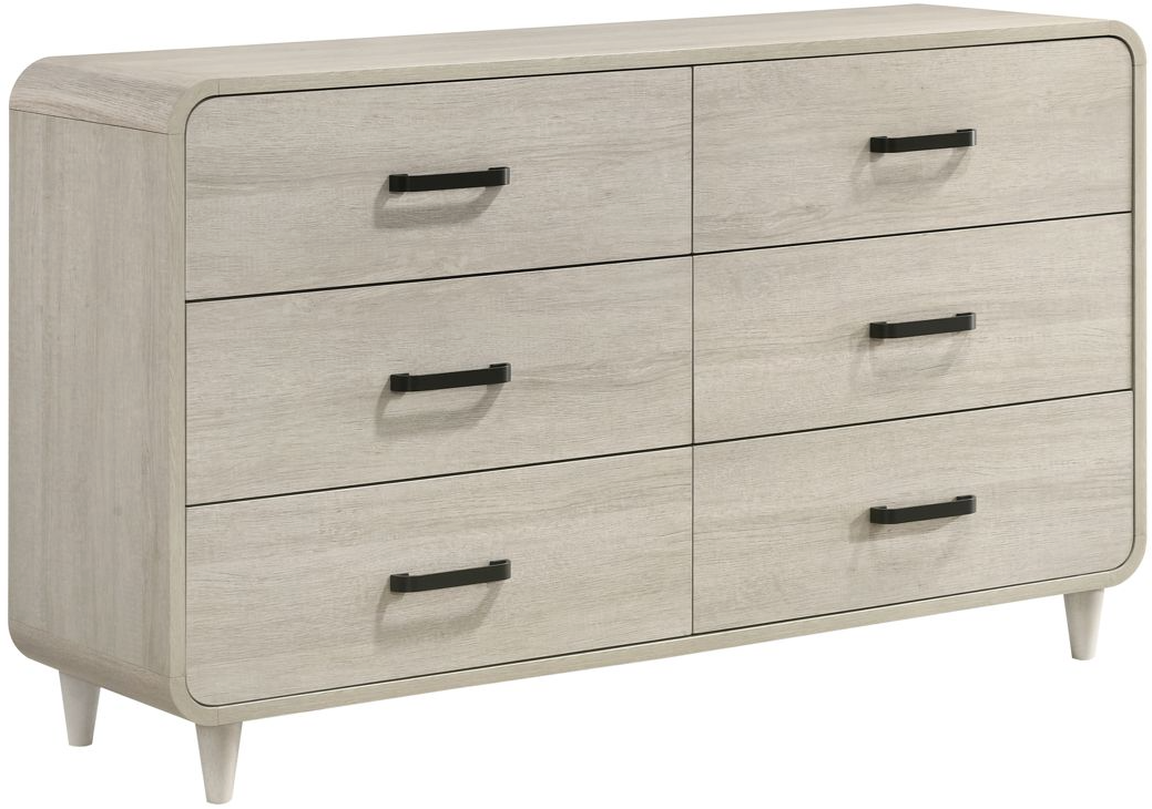 The Nyomi Dresser from Crown Mark is a stylish and functional piece featuring a sleek white finish, six spacious drawers, and silver-toned handles. Its contemporary design blends seamlessly with modern or transitional décor, offering ample storage for clothing and essentials.Read More