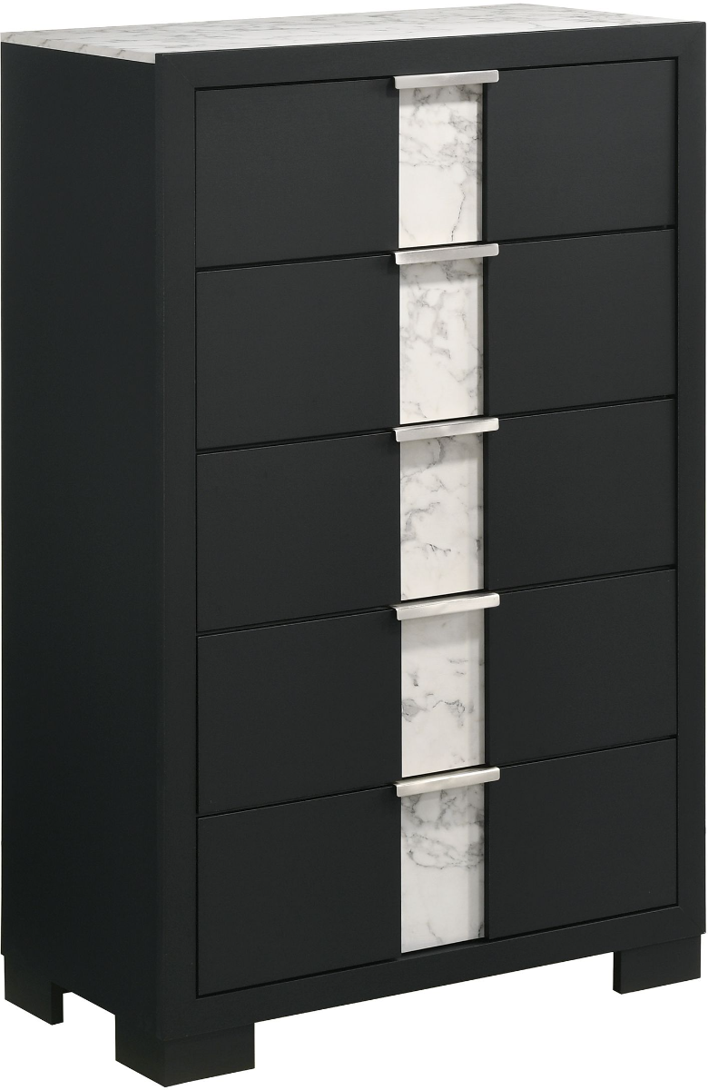 Include additional storage in your bedroom area with this chest from the Rangley collection, It has 5 drawers and a wood case finished in a black finish. Make a bold statement by incorporating this chest into your home.Read More