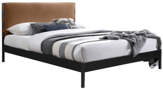 Perfect for elevating any bedroom decor, the Abigail cognac vegan leather upholstered king bed offers a blend of modern sophistication and comfort. Featuring a sleek black metal frame, this bed is enhanced by a vegan leather headboard for a striking contrast.Read More