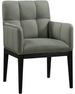 Tailored and modern, the Adrian green vegan leather upholstered dining arm chair brings together soft vegan leather and a black finish for a clean, elevated look. Supported by a solid wood frame and legs, it balances comfort with lasting durability. Use it to add a contemporary edge to dining spaces, offices, or cozy corners.Read More