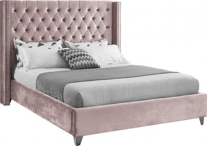 Elegant and eye-catching, the stunning Aiden Bed from Meridian Furniture is the perfect addition to any bedroom. Rich velvet covers the deep tufted design. A beautiful wing bed design is complimented by hand applied chrome nail head details. Strength and beauty is guaranteed with a solid wood frame and stainless steel legs.Read More