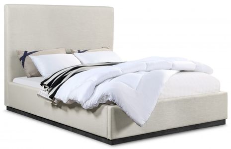 Give your bedroom a regal vibe when you add this Alfie linen textured fabric bed to the mix. The ultra tall headboard on this full-size bed makes a bold impression from all angles and is covered in rich beige linen textured fabric that forms a pleasant contrast with the black finish solid wood base.Read More