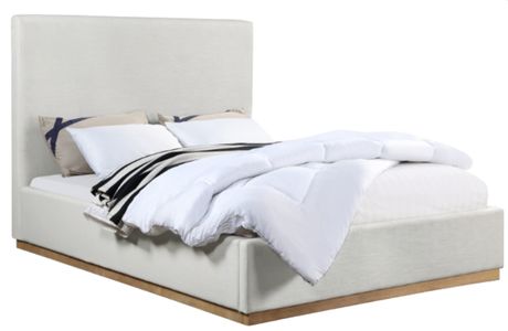 Give your bedroom a regal vibe when you add this Alfie linen textured fabric bed to the mix. The ultra-tall headboard on this full-size bed makes a bold impression from all angles and is covered in rich cream linen-textured fabric that forms a pleasant contrast with the black.Read More