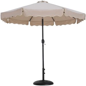 Escape from the sun's rays when you're basking beneath this Amalfi beige fabric with cream piping and matte black aluminum patio umbrella with base set. This umbrella and stand is an ideal option for adding shade to any area of your deck or patio.Read More