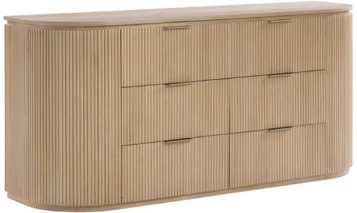 Texture takes the lead with the Astrid natural solid wood and oak veneer dresser. Wrapped in sleek fluted wood and finished in a deep, moody tone, this contemporary design is both bold and refined. Whether styled in a bedroom or living space, it delivers effortless storage with standout style.Read More