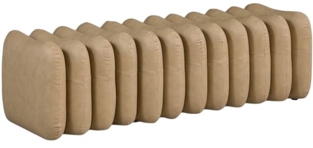 A bold and modern statement piece is the Atticus tan vegan leather upholstered bench that will elevate any room. Its unique, segmented design adds visual interest, while the plush tan vegan leather upholstery provides comfort and style. Perfectly versatile, this bench is an eye-catching addition to your home.Read More