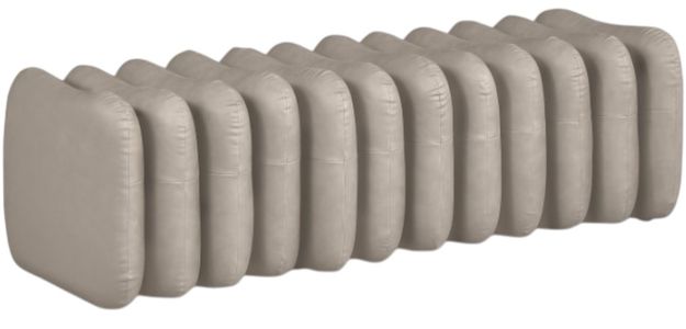 A bold and modern statement piece is the Atticus taupe vegan leather upholstered bench that will elevate any room. Its unique, segmented design adds visual interest, while the plush taupe vegan leather upholstery provides comfort and style. Perfectly versatile, this bench is an eye-catching addition to your home.Read More
