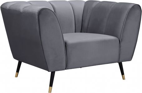 Sink your body into the inviting comfort of this Beaumont velvet chair. Upholstered in a soft shade of grey with black metal legs tipped in gold, this chair oozes modern charm and up-to-the-minute comfort. The heavily stuffed arms, seat and back are bound to beckon at day’s end for you to sit and relax.Read More