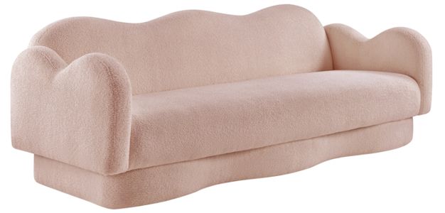 Elevate your space with the Bloom sofa, upholstered in soft pink faux shearling teddy fabric. This beautifully crafted sofa combines modern design with a unique curvy back and base, making it both a stylish and comfortable addition to any room. Designed for durability and elegance.Read More