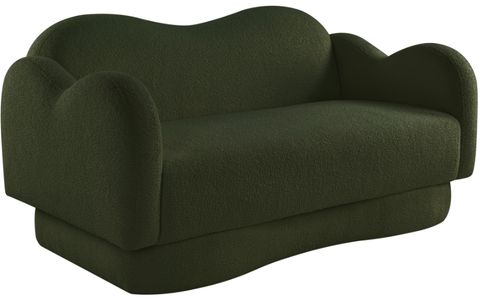 Elevate your space with the Bloom loveseat, upholstered in soft green faux shearling teddy fabric. This beautifully crafted loveseat combines modern design with a unique curvy back and base, making it both a stylish and comfortable addition to any room. Designed for durability and elegance.Read More