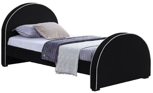 Get a good night’s sleep with this Brody black velvet twin bed. Crafted from a mixture of wood, velvet, and foam, this bed is as comfy as it is cozy. Its soft black velvet bed frame features cream velvet piping, giving it an appearance reminiscent of gingerbread.Read More