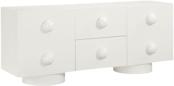 Organization takes a stylish turn when you add this Bubble cream rubberwood with oak veneer sideboard/buffet to your dining room. Simplicity takes center stage with this handsome buffet that features two roomy drawers and two doors with hidden shelving for holding linens, napkins, serving ware, and more.Read More