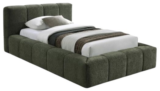 Upgrade your bedroom with the Carlin olive chenille twin bed, showcasing a unique yet elegant frame with channel tufting. This bed effortlessly combines contemporary style with practical design. Its smooth, velvety texture and refined details create a striking centerpiece, embodying both exquisite taste and timeless beauty.Read More