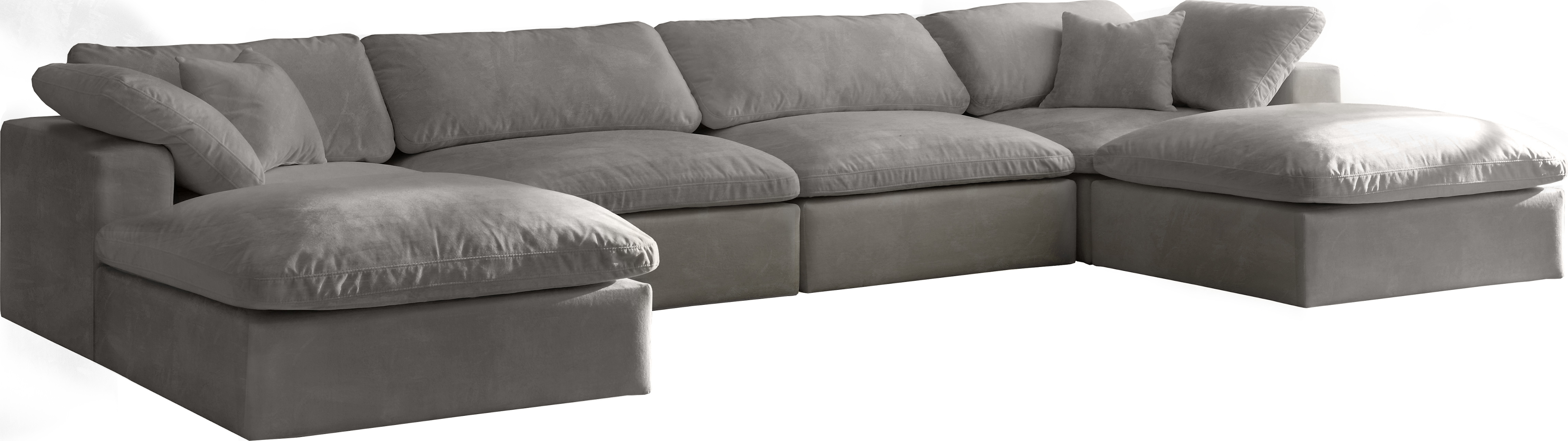 Bring home this Cozy 6-piece sectional for a fresh new look. Embrace casual elegance with this Cozy velvet cloud modular down-filled seating option. Handsome from all angles, this piece features soft grey velvet upholstery to make it an easy fit in any room.Read More