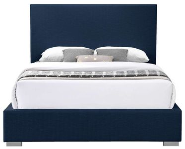 The neutral fabric—a rich beige linen upholstered from head to foot—pairs easily with any number of color schemes. An ideal option for any room where minimalism is the order of the day, this bed comes with both gold and chrome legs for a custom look.Read More