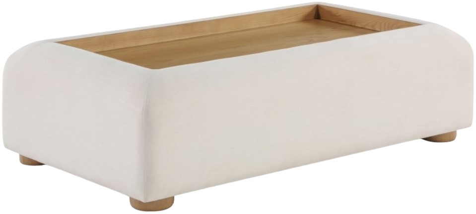 The striking cream linen textured fabric gives the table textural appeal while the solid wooden natural finished table top and legs lends it the hallmarks of art deco design for an elevated vibe that's well suited to both casual and more formal settings.