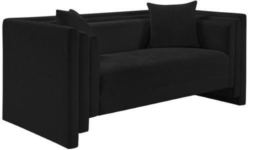 Make this Everett black chenille fabric loveseat the center of a cozy reading nook. Handsome from every angle, this posh loveseat is plumply appointed to put supreme comfort within easy reach. Soft black chenille upholstery fabric adds to its lavish feel while a staggered design gives it a modern edge.Read More