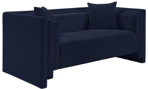 Make this Everett navy fabric loveseat the center of a cozy reading nook. Handsome from every angle, this posh loveseat is plumply appointed to put supreme comfort within easy reach. Soft black chenille upholstery fabric adds to its lavish feel while a staggered design gives it a modern edge.Read More