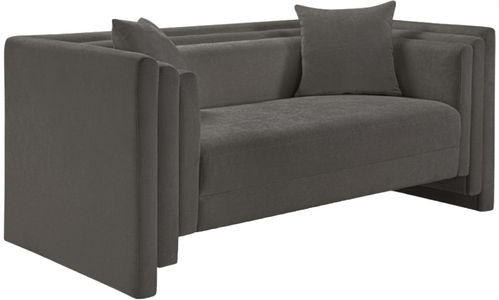 Make this Everett gray fabric loveseat the center of a cozy reading nook. Handsome from every angle, this posh loveseat is plumply appointed to put supreme comfort within easy reach. Soft black chenille upholstery fabric adds to its lavish feel while a staggered design gives it a modern edge.Read More