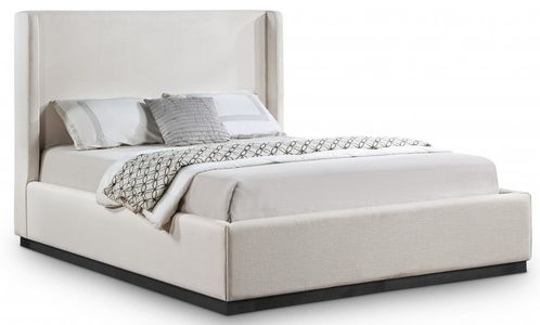 The linen upholstery fabric that covers this entire bed from top to bottom is soft to the touch, while the headboard is lightly padded for comfort as you read in bed or watch TV. A solid wood base provides sturdy support for this impeccably styed fabric bed.