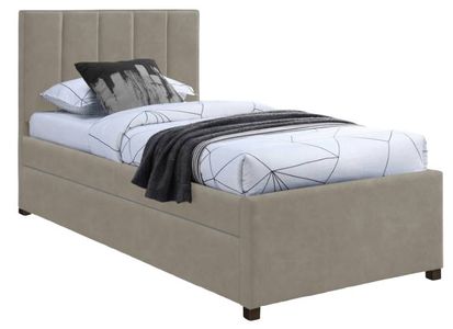 Maximize space in the bedroom with this Hudson beige vegan leather twin trundle bed. Crafted from soft beige premium vegan leather, it's not only luxurious but also water-resistant and anti-scratch, ensuring long-lasting beauty.Read More