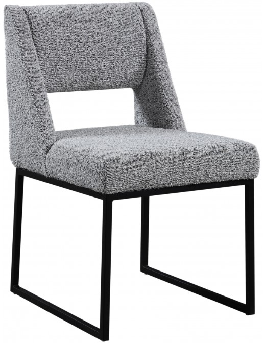 Its contemporary design is ideal for any modern home, and its neutral grey color matches any color dining table. Its plush boucle upholstery provides you with a comfortable pace to sit, and its open rectangular back is stylish while adding spine support.