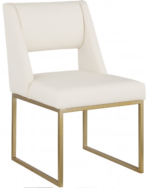 Get comfy at your dinner table with this Jayce cream vegan leather dining chair. Its soft cream vegan leather upholstery offers a comfortable place to sit, while its brushed brass iron base provides stability and durability. Its semi-open back, contemporary design is ideal for any modern home decor.Read More