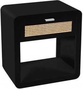 Lend your bedroom a distinctive touch with this Langham black night stand from Meridian Furniture. Featuring an open, rectangular design and a natural cane drawer front, this night stand is truly unique. A sleek black finish complements the existing decor in your bedroom.Read More