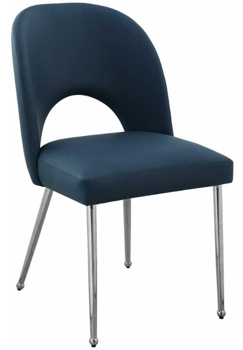 Give your dining area a modern makeover with this Logan navy vegan leather dining chair. Featuring soft navy vegan leather upholstery, this dining chair is both luxurious and comfortable. Its rich chrome finish complements its navy vegan leather seat and backrest, making it the perfect addition for any contemporary home.Read More
