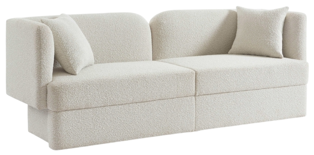 Bring artsy fun to your room with this Marcel cream boucle fabric sofa. This eye-grabbing sofa is part art, part functional seating item for your living room, bedroom, and beyond. The rich cream boucle fabric is soft and yielding against the skin, keeping you comfortable while you unwind and relax.Read More