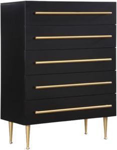 Turn to the Marisol chest to make a big impression in your modern bedroom. This contemporary piece looks great on its own or paired with other items in the Marisol collection. Eye-catchingly elegant, this piece features a rich black finish with brushed gold metal legs and handle for an up-to-the-minute vibe in your bedroom sanctuary.Read More