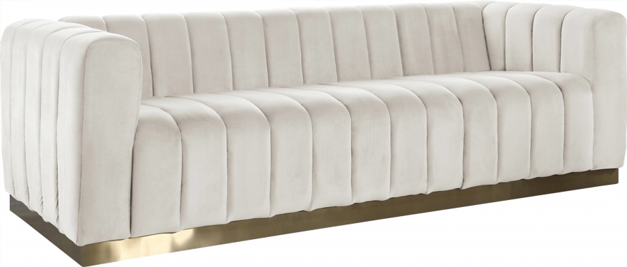Seat guests in the epitome of comfort and style with this Marlon velvet sofa. This piece is just the thing to showcase your modish style while ensuring total enjoyment from all who are lucky enough to relax on its channel tufted seats.Read More