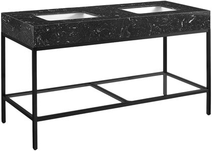 Give your bathroom a fresh new look with this Marmo 60-inch bathroom vanity. This eye-grabbing vanity gives your restroom a spa vibe that's oozing contemporary charm and sophistication. The black marble sink features white veining for an upscale presentation and rests on a matte black-finish stainless steel base for long-lasting beauty and performance.Read More