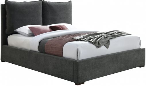 Get comfortable in the gorgeous Misha black velvet full-size bed. The tall, upholstered headboard is decorated with deep channel tufting in concentric squares, and the side rails and footboard are all upholstered as well. You won't need to purchase a box spring for this bed, because a complete set of slats is included. Match any décor with the legs, which are provided in both gold and chrome for your convenience.Read More