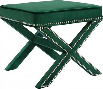 You'll be sitting pretty on this Nixon green velvet ottoman/bench. This beautiful piece has a stunning look with its black velvet upholstery and chrome nail head trim that gives your room a decidedly contemporary vibe.Read More