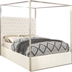 Dream big in the Porter white velvet canopy bed. This handsome Meridian Furniture bed has a tufted headboard that stands a full 60 inches tall, giving the bed a regal and sophisticated look.Read More