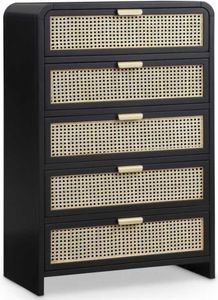 Bold design elements are the hallmark of this Sage wood chest. This beautiful chest features up-to-the-minute styling and a black finish that's perfect for your contemporary room. Natural cane details provide an exciting contrast that adds a robust finish to your bedroom look.Read More
