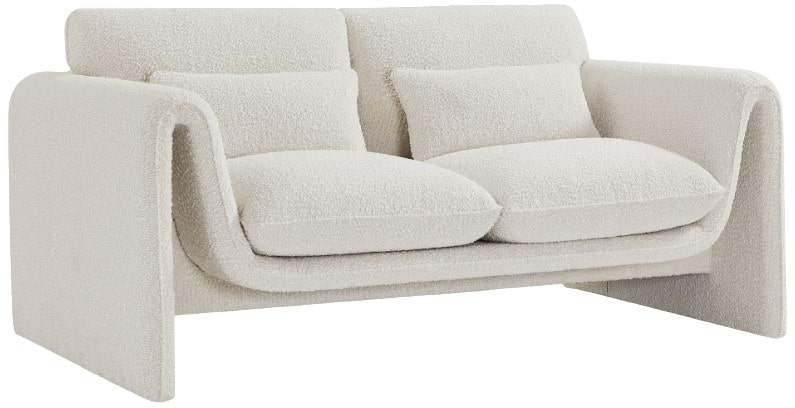 Impress family and guests alike with this Stylus boucle fabric loveseat. This modish loveseat oozes contemporary panache with its curved arms and unexpected design elements. Thickly padded seat and back cushions cradle your body in supportive comfort while the rich cream boucle fabric caresses the skin and leaves you feeling relaxed and recharged.Read More