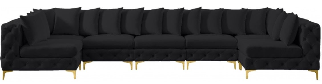 Lean back and relax on this Tremblay sectional. Featuring soft black velvet upholstery with deep button tufting, this sectional adds a bold touch to any living space. A complete set of gold and chrome legs are included, so you can change it up to suit your home décor.Read More