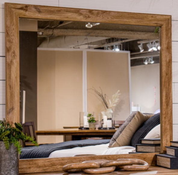 Approachable in character, this bedroom mirror embodies fresh style that inspires. Its warm finish and replicated oak grain invite with homey charm, while the ability to mount it on the matching dresser (sold separately) or on the wall provides added flexibility. From urban chic to modern farmhouse, this versatile piece seamlessly reflects your eye for design.Read More